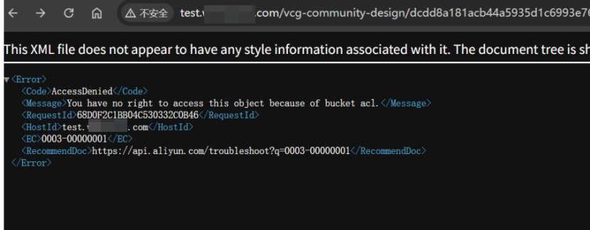 2025年10月,某单位收到网友反馈,其所属域名疑似被劫持,会跳转到非法页面,我一看,得了,又是阿里云存储桶,但这次是私有云部署的OSS存储桶,经过排查URL,发现攻击者上传含恶意 JS 的图片,并在访问 URL 后拼: