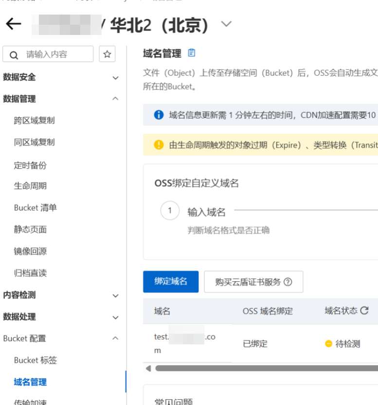 3、存储桶使用了所属域名。