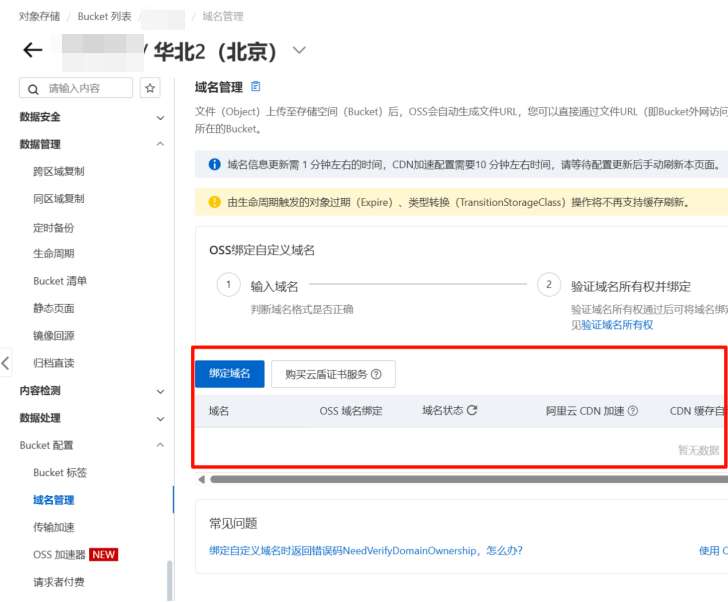 2、在存储桶域名管理处不绑定域名: