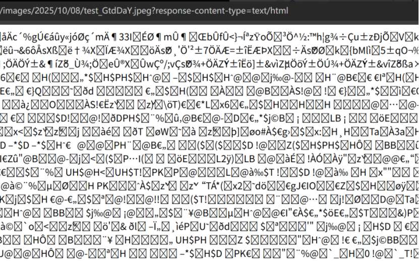 ?response-content-type=text/html攻击者先通过正常渠道上传包含恶意JS的图片: